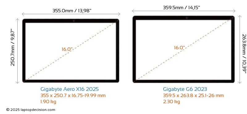 HDMIBoth Aero X16 2025 and G6 2023 feature an HDMI port (1x HDMI 2.1) for connecting to external monitors.
