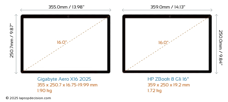 Thunderbolt ZBook 8 G1i 16" is equipped with Thunderbolt 4 port. Aero X16 2025 does not have Thunderbolt port.