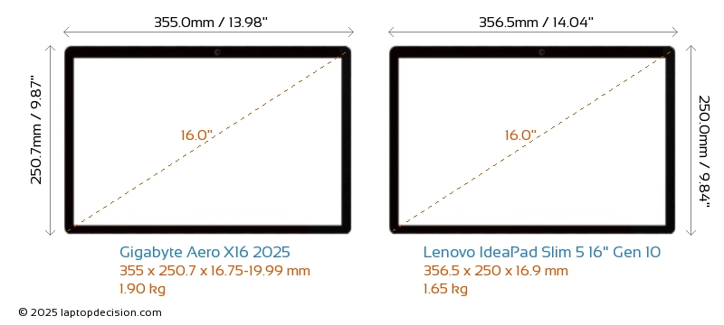 ThunderboltNeither Aero X16 2025 nor IdeaPad Slim 5 16" Gen 10 has Thunderbolt port.