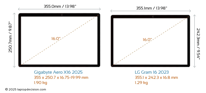 HDMIBoth Aero X16 2025 and Gram 16 2023 feature an HDMI port. Aero X16 2025 offers 1x HDMI 2.1, while Gram 16 2023 offers 1x HDMI 2.0.