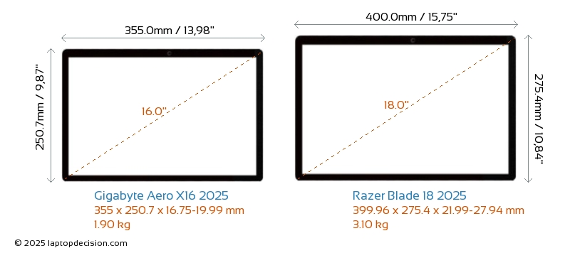 HDMIBoth Aero X16 2025 and Blade 18 2025 feature an HDMI port (1x HDMI 2.1) for connecting to external monitors.