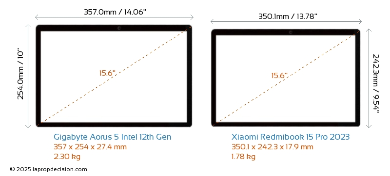 Audio JackBoth Aorus 5 Intel 12th Gen and Redmibook 15 Pro 2023 are equipped with a 3.5mm Audio Jack, providing seamless connection to headphones and speakers.