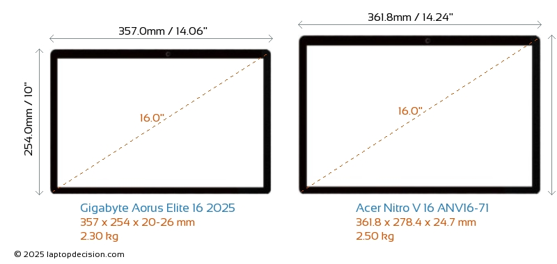 SD Card Reader Aorus Elite 16 2025 is equipped with an SD Card Reader for easy access to memory cards. Nitro V 16 ANV16-71 does not have an SD Card Reader.