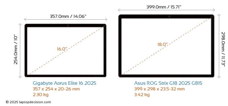 SD Card Reader Aorus Elite 16 2025 is equipped with an SD Card Reader for easy access to memory cards. ROG Strix G18 2025 G815 does not have an SD Card Reader.
