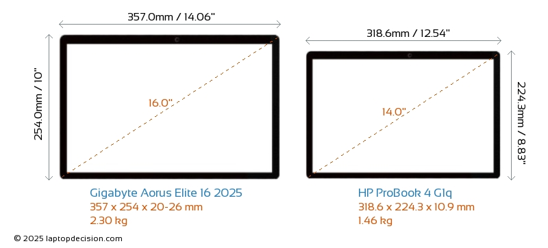 HDMIBoth Aorus Elite 16 2025 and ProBook 4 G1q feature an HDMI port (1x HDMI 2.1) for connecting to external monitors.