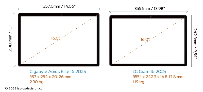 HDMIBoth Aorus Elite 16 2025 and Gram 16 2024 feature an HDMI port (1x HDMI 2.1) for connecting to external monitors.