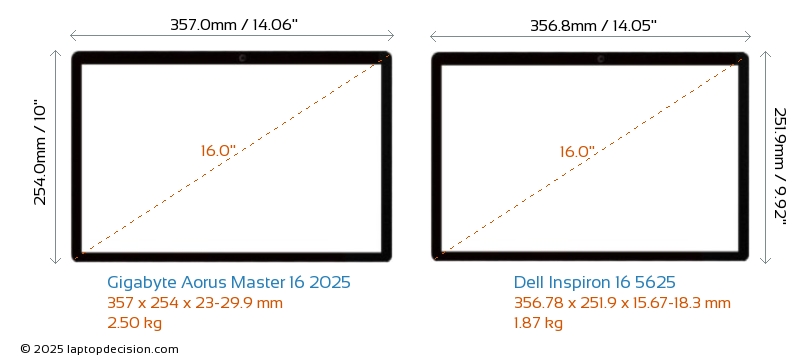 Audio JackBoth Aorus Master 16 2025 and Inspiron 16 5625 are equipped with a 3.5mm Audio Jack, providing seamless connection to headphones and speakers.