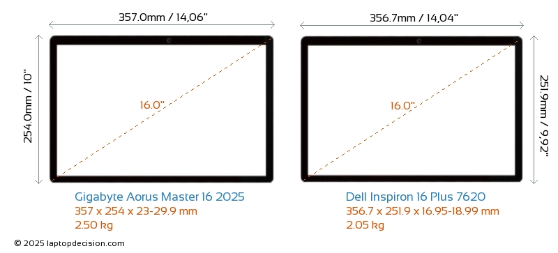 Audio JackBoth Aorus Master 16 2025 and Inspiron 16 Plus 7620 are equipped with a 3.5mm Audio Jack, providing seamless connection to headphones and speakers.