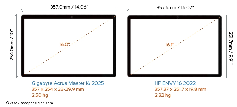 HDMIBoth Aorus Master 16 2025 and ENVY 16 2022 feature an HDMI port (1x HDMI 2.1) for connecting to external monitors.