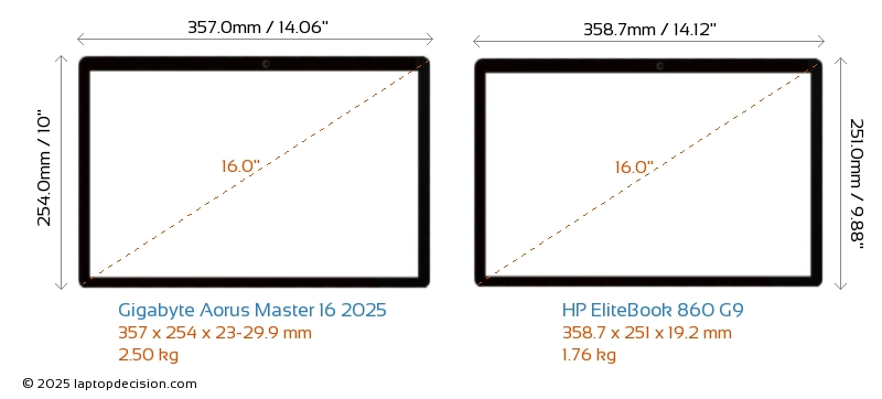 HDMIBoth Aorus Master 16 2025 and EliteBook 860 G9 feature an HDMI port. Aorus Master 16 2025 offers 1x HDMI 2.1, while EliteBook 860 G9 offers 1x HDMI 2.0.