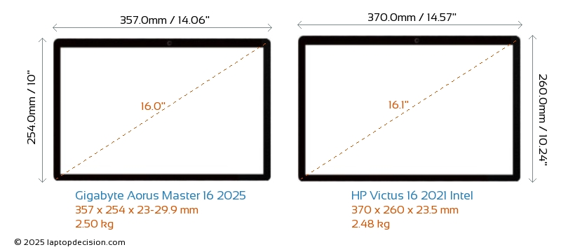 Thunderbolt Aorus Master 16 2025 is equipped with Thunderbolt 5 port. Victus 16 2021 Intel does not have Thunderbolt port.