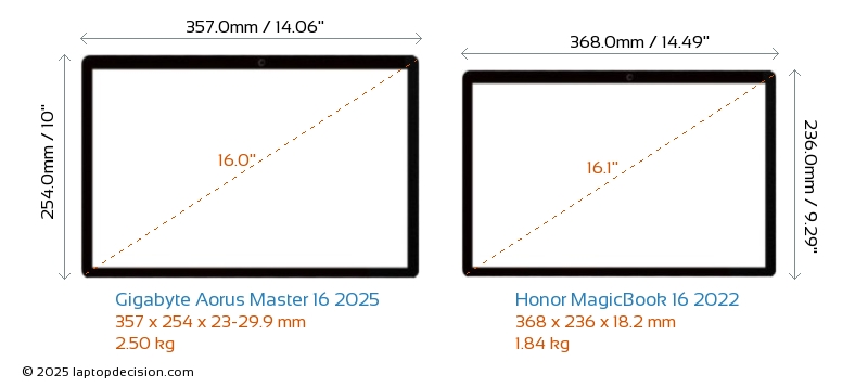 Thunderbolt Aorus Master 16 2025 is equipped with Thunderbolt 5 port. MagicBook 16 2022 does not have Thunderbolt port.