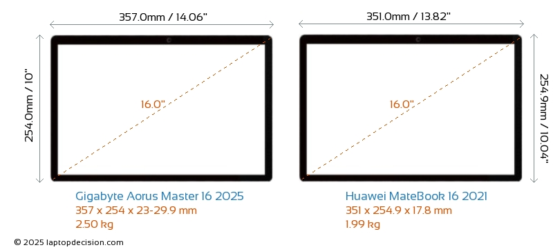 Thunderbolt Aorus Master 16 2025 is equipped with Thunderbolt 5 port. MateBook 16 2021 does not have Thunderbolt port.