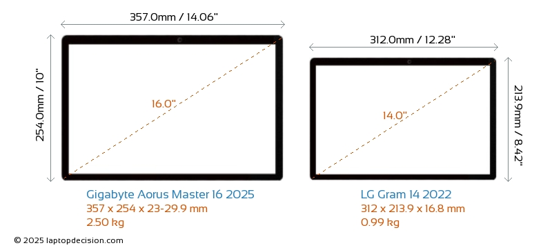 HDMIBoth Aorus Master 16 2025 and Gram 14 2022 feature an HDMI port. Aorus Master 16 2025 offers 1x HDMI 2.1, while Gram 14 2022 offers 1x HDMI 2.0.