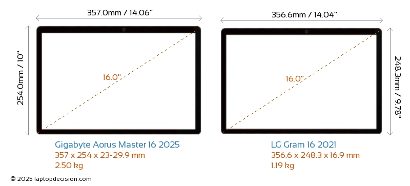 HDMIBoth Aorus Master 16 2025 and Gram 16 2021 feature an HDMI port. Aorus Master 16 2025 offers 1x HDMI 2.1, while Gram 16 2021 offers 1x HDMI 2.0.