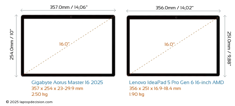 HDMIBoth Aorus Master 16 2025 and IdeaPad 5 Pro Gen 6 16-inch AMD feature an HDMI port. Aorus Master 16 2025 offers 1x HDMI 2.1, while IdeaPad 5 Pro Gen 6 16-inch AMD offers 1x HDMI 1.4.