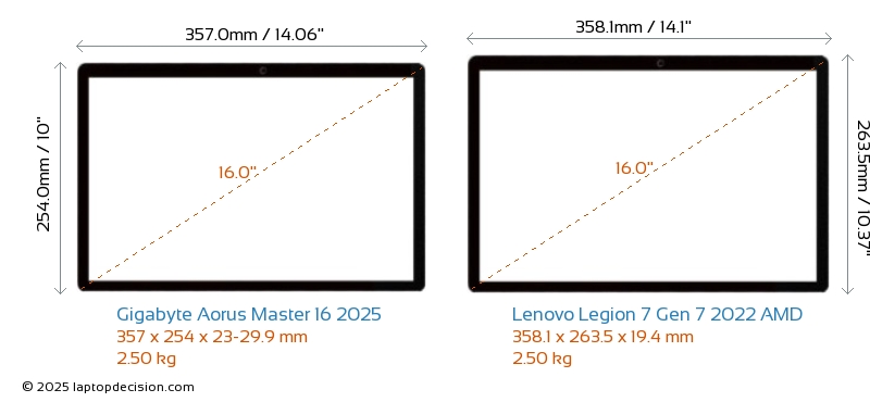 SD Card Reader Aorus Master 16 2025 is equipped with an SD Card Reader for easy access to memory cards. Legion 7 Gen 7 2022 AMD does not have an SD Card Reader.