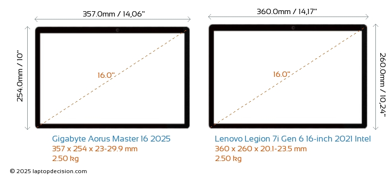 SD Card Reader Aorus Master 16 2025 is equipped with an SD Card Reader for easy access to memory cards. Legion 7i Gen 6 16-inch 2021 Intel does not have an SD Card Reader.