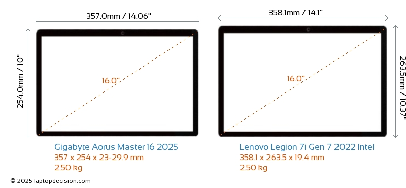 SD Card Reader Aorus Master 16 2025 is equipped with an SD Card Reader for easy access to memory cards. Legion 7i Gen 7 2022 Intel does not have an SD Card Reader.
