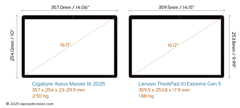 ThunderboltBoth Aorus Master 16 2025 and ThinkPad X1 Extreme Gen 5 feature Thunderbolt ports. Aorus Master 16 2025 has Thunderbolt 5, while ThinkPad X1 Extreme Gen 5 has Thunderbolt 4.