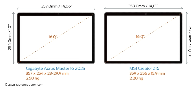 Wifi Aorus Master 16 2025 features a more advanced Wi-Fi standard v7, providing faster and more reliable wireless connections compared to Creator Z16 (v6).