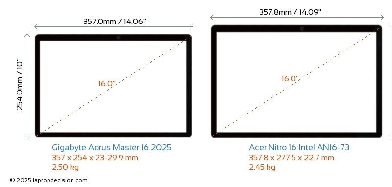 SD Card ReaderBoth Aorus Master 16 2025 and Nitro 16 Intel AN16-73 come with an SD Card Reader for easy access to memory cards.