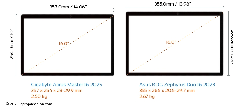 Wifi Aorus Master 16 2025 features a more advanced Wi-Fi standard v7, providing faster and more reliable wireless connections compared to ROG Zephyrus Duo 16 2023 (v6E).