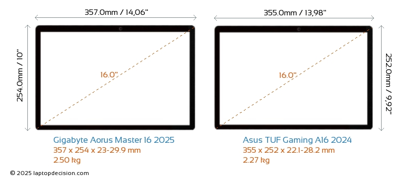 SD Card Reader Aorus Master 16 2025 is equipped with an SD Card Reader for easy access to memory cards. TUF Gaming A16 2024 does not have an SD Card Reader.