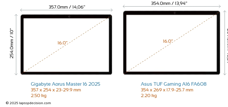 SD Card Reader Aorus Master 16 2025 is equipped with an SD Card Reader for easy access to memory cards. TUF Gaming A16 FA608 does not have an SD Card Reader.