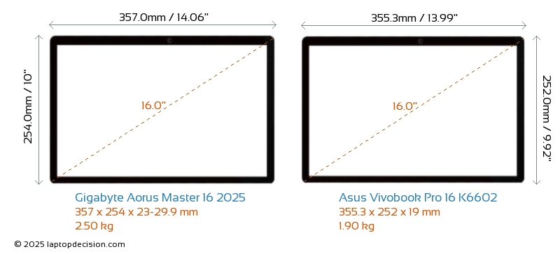 Audio JackBoth Aorus Master 16 2025 and Vivobook Pro 16 K6602 are equipped with a 3.5mm Audio Jack, providing seamless connection to headphones and speakers.