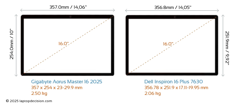 Audio JackBoth Aorus Master 16 2025 and Inspiron 16 Plus 7630 are equipped with a 3.5mm Audio Jack, providing seamless connection to headphones and speakers.