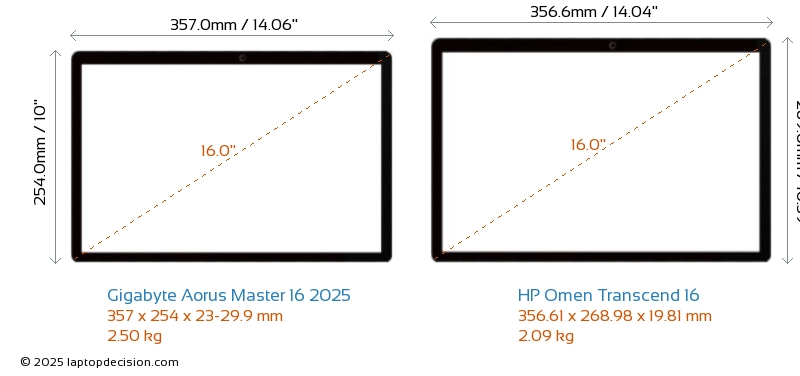 HDMIBoth Aorus Master 16 2025 and Omen Transcend 16 feature an HDMI port (1x HDMI 2.1) for connecting to external monitors.