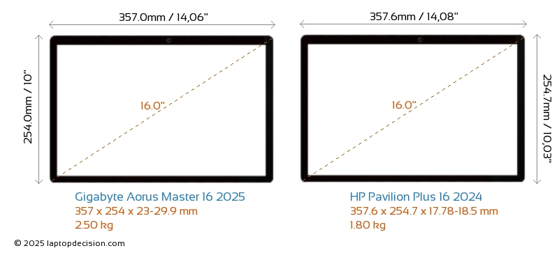 Audio JackBoth Aorus Master 16 2025 and Pavilion Plus 16 2024 are equipped with a 3.5mm Audio Jack, providing seamless connection to headphones and speakers.