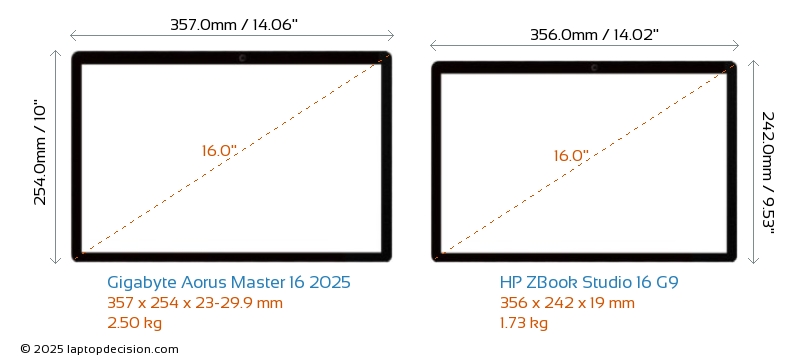 Audio JackBoth Aorus Master 16 2025 and ZBook Studio 16 G9 are equipped with a 3.5mm Audio Jack, providing seamless connection to headphones and speakers.