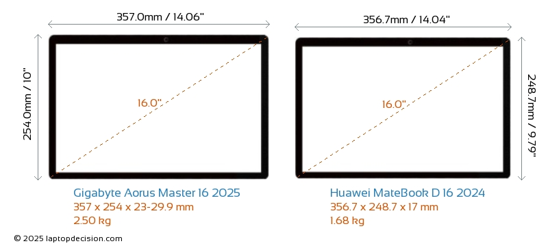 HDMIBoth Aorus Master 16 2025 and MateBook D 16 2024 feature an HDMI port (1x HDMI 2.1) for connecting to external monitors.