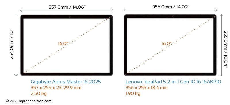 USBBoth Aorus Master 16 2025 and IdeaPad 5 2-in-1 Gen 10 16 16AKP10 feature 2x USB 3.2 USB-A ports.Both Aorus Master 16 2025 and IdeaPad 5 2-in-1 Gen 10 16 16AKP10 feature 2x USB 4.0 USB Type-C ports.