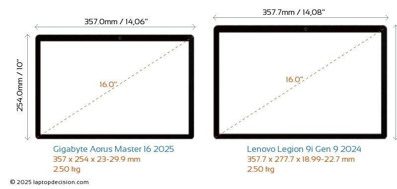 Gigabyte Aorus Master 16 2025 vs Lenovo Legion 9i Gen 9 2024 Comparison