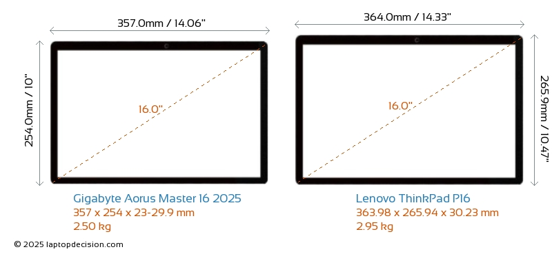 ThunderboltBoth Aorus Master 16 2025 and ThinkPad P16 feature Thunderbolt ports. Aorus Master 16 2025 has Thunderbolt 5, while ThinkPad P16 has Thunderbolt 4.