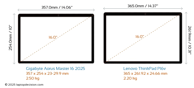 ThunderboltBoth Aorus Master 16 2025 and ThinkPad P16v feature Thunderbolt ports. Aorus Master 16 2025 has Thunderbolt 5, while ThinkPad P16v has Thunderbolt 4.