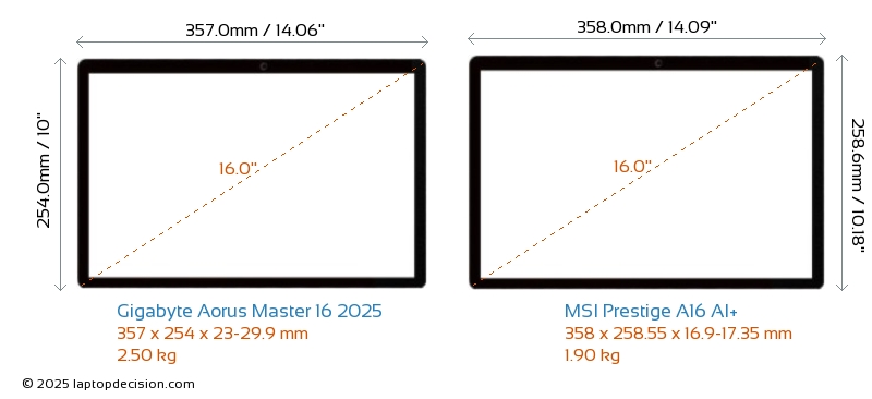 USBBoth Aorus Master 16 2025 and Prestige A16 AI+ feature 2x USB 3.2 USB-A ports.Both Aorus Master 16 2025 and Prestige A16 AI+ feature 2x USB 4.0 USB Type-C ports.