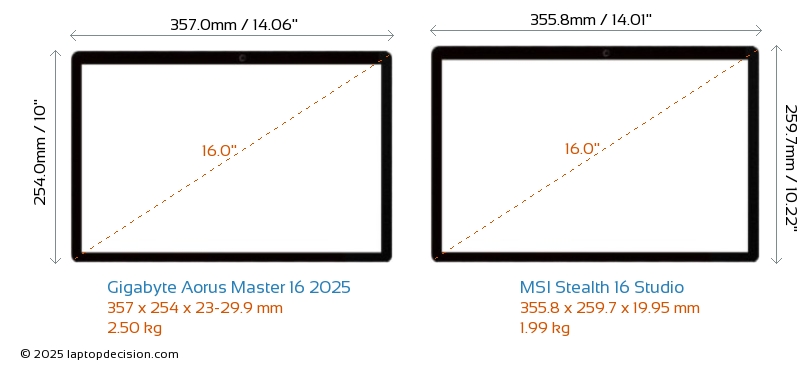 Wifi Aorus Master 16 2025 features a more advanced Wi-Fi standard v7, providing faster and more reliable wireless connections compared to Stealth 16 Studio (v6E).