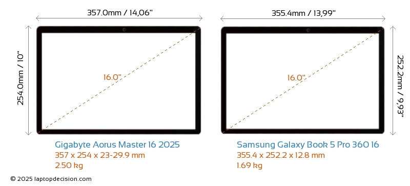 HDMIBoth Aorus Master 16 2025 and Galaxy Book 5 Pro 360 16 feature an HDMI port (1x HDMI 2.1) for connecting to external monitors.
