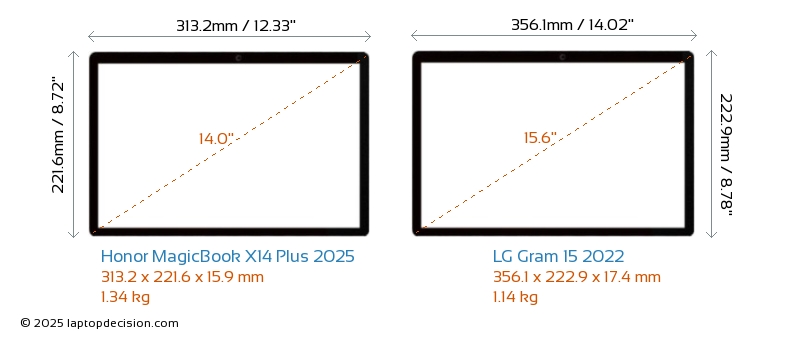 HDMIBoth MagicBook X14 Plus 2025 and Gram 15 2022 feature an HDMI port. MagicBook X14 Plus 2025 offers 1x HDMI 1.4, while Gram 15 2022 offers 1x HDMI 2.0.