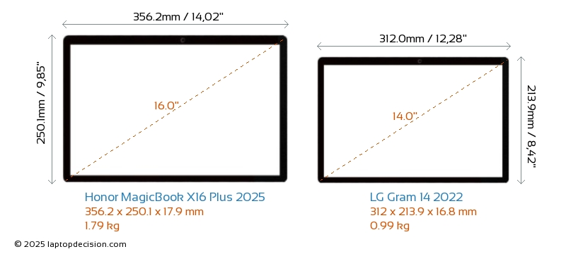 HDMIBoth MagicBook X16 Plus 2025 and Gram 14 2022 feature an HDMI port. MagicBook X16 Plus 2025 offers 1x HDMI 1.4, while Gram 14 2022 offers 1x HDMI 2.0.