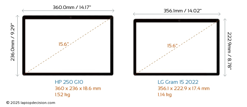 HDMIBoth 250 G10 and Gram 15 2022 feature an HDMI port. 250 G10 offers 1x HDMI 1.4, while Gram 15 2022 offers 1x HDMI 2.0.