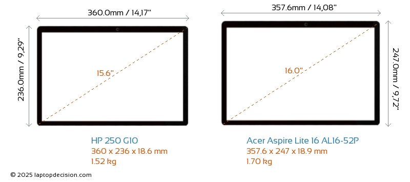 HDMIBoth 250 G10 and Aspire Lite 16 AL16-52P feature an HDMI port (1x HDMI 1.4) for connecting to external monitors.