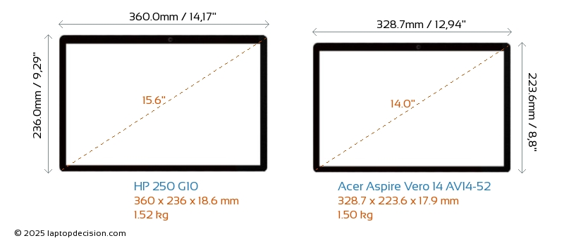 SD Card Reader 250 G10 is equipped with an SD Card Reader for easy access to memory cards. Aspire Vero 14 AV14-52 does not have an SD Card Reader.