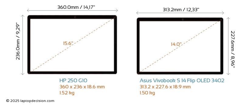 USBBoth 250 G10 and Vivobook S 14 Flip OLED 3402 feature 2x USB 3.2 USB-A ports.Both 250 G10 and Vivobook S 14 Flip OLED 3402 feature 1x USB 3.2 USB Type-C ports.