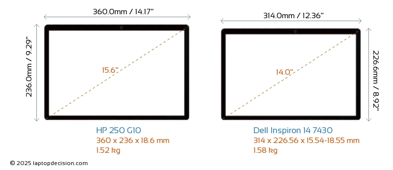 USBBoth 250 G10 and Inspiron 14 7430 have USB-A ports. 250 G10 has 2x USB 3.2 USB-A ports, while Inspiron 14 7430 has 1x USB 3.2 USB-A ports.Both 250 G10 and Inspiron 14 7430 have USB Type-C ports. 250 G10 has 1x USB 3.2 USB Type-C ports, while Inspiron 14 7430 has 2x USB 4.0 USB Type-C ports.