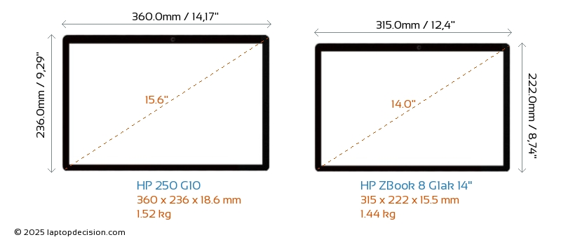 HDMIBoth 250 G10 and ZBook 8 G1ak 14" feature an HDMI port. 250 G10 offers 1x HDMI 1.4, while ZBook 8 G1ak 14" offers 1x HDMI 2.1.